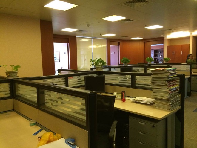 总建筑面积14万平米,可租写字楼面积3.8万平米,标准层面积2300平,开间面积2500平米,净层高2.8米,使用率70%,公共部分精装修