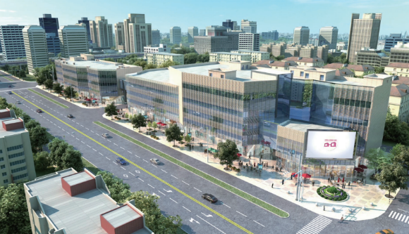中国北京人力资源服务产业园区通州园一期选址通百天成中心,坐落于通州区新华东街,所处为老城区闸桥商圈范围,同时亦是北京城市副中心规划运河商务区的核心起步区。通百天成中心占地面积14615㎡,总建筑面积55000㎡,产业可用面积27300㎡。楼宇地上部分共5层,分为A(东侧)、B(西侧)两座,其间以廊道相连。A座主要用于产业园综合功能集聚,设有人力资源公共服务窗口、商务服务窗口、企业创新及标志性成果展示区、企业办公区、资料存阅区及大型会议室、报告厅,B座主要用于人力资源服务机构办公。是集人力资源机构办公、产品展示、行业集会、公共服务、商务服务、商业配套服务于一体的综合性人力资源产业载体。
