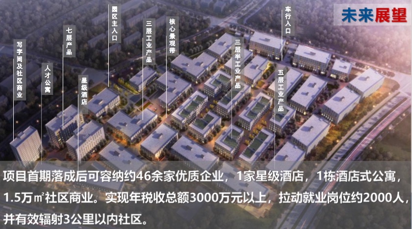 中南高科港闸车创项目位于南通港闸区,项目总规划占地面积228亩,其中商业7596.2平米,工业144327.8平米,地上总建筑面积239662.27平米,容积率1.58,绿地率15%,项目业态涵盖多层厂房、配套商务用房、办公楼及商业;