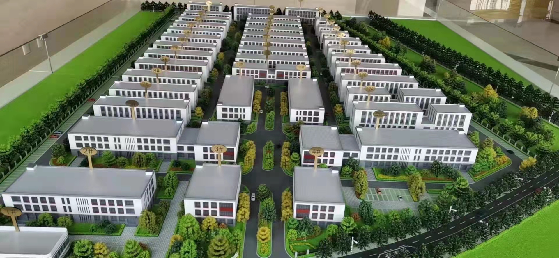 您现在看到的是项目的实景沙盘,沙盘是上北下南左西右东的方位。我们的位置在这里(招商中心)。咱们项目位于天津滨海高新区管委会旁,港城大道与汉港路交口,项目的四至:南起高研道、北至高泰道、西侧合纵科技(上市公司)、东临汉港公路。总占地170亩,总建筑面积11万平米,绿化率20%,容积率1.02,共建设厂房40栋,预计引进入园企业70家,企业全部达产后园区每年可实现税收8000万元。