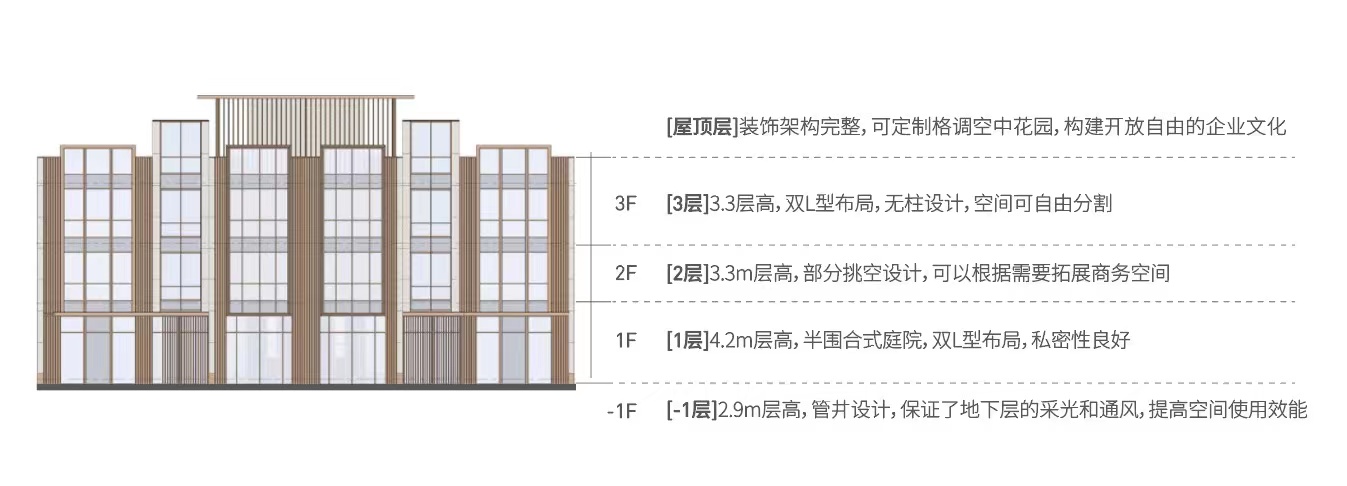 企业复式:面积区间为:348-397㎡,价格:13000元每平米,层高:共八层,每层层高均为6.6米
