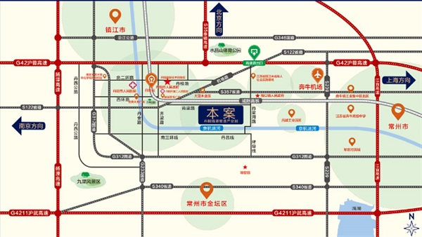 交 通:公路:启扬高速、沪蓉高速在侧,122省道、312国道、沪宁高速公路、镇丹高速、京沪铁路、京沪高铁、沪宁城际铁路、京杭大运河穿城而过。 机场:距离奔牛机场16公里。 高铁:距离丹阳高铁站9公里。