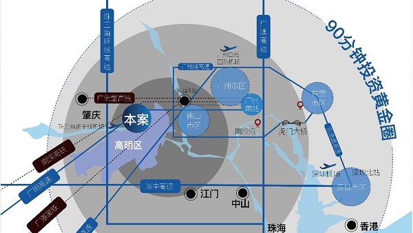 交 通:公路:广明高速、佛山一环西拓、沈海高速、广州绕城高速。 高铁:佛山西站、广州南站。 机场:珠三角新干线机场(规划)、广州白云机场。 港口:高明港口。离高速口仅15分钟车程,通过广明高速连接大湾区各大高速干线,畅享90分钟湾区产业圈。