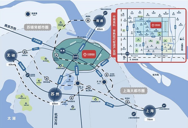 交 通:园区距沪通铁路常熟站26公里(30分钟),距苏州北站49公里(45分钟),距昆山站50公里 (50分钟),距上海虹桥火车站80公里;周边常台高速、沈海高速、沪武高速、沿江高速。