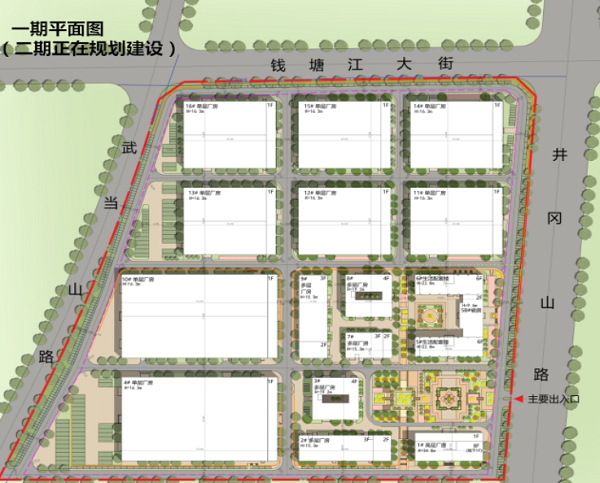 综合办公楼1栋;面积约 1万平米;配套楼;面积 1.4万平米;多层厂房;总建筑面积2.6万平米,共5栋,单栋面积约 2900 - 6000平米;单层厂房;总建筑面积5.8万平米;可根据不同面积段要求灵活划分;
